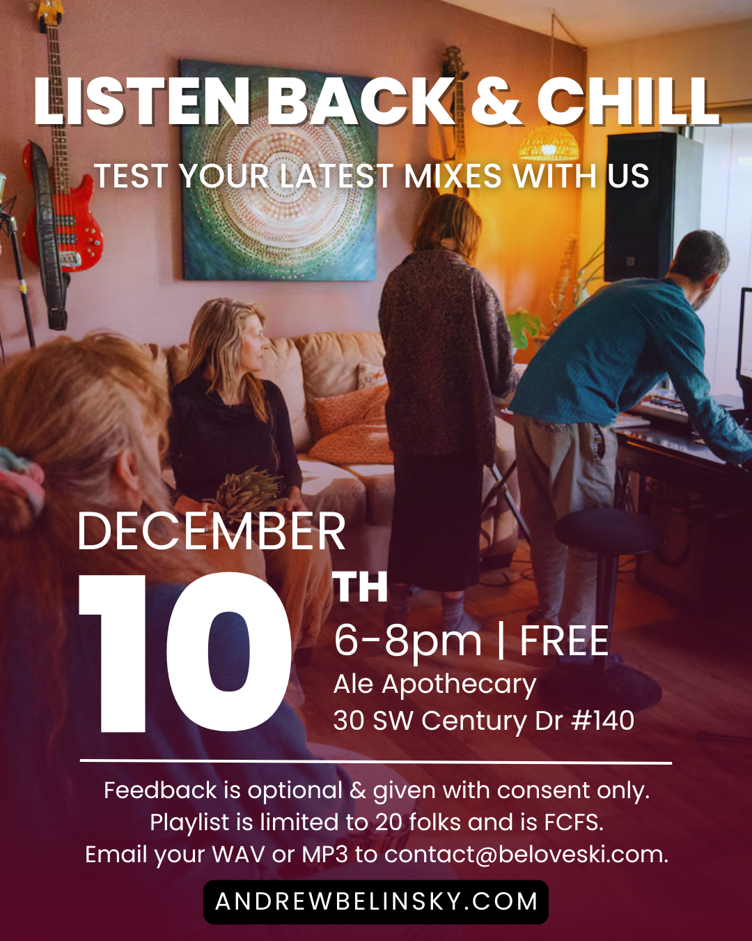 Whether you're a bedroom producer, a seasoned songwriter, or someone who just wants to hear your track on a great sound system — you're invited.