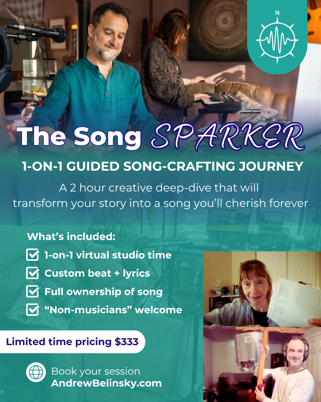 A 2-hour creative deep-dive that helps you transform your life stories, challenges, and emotions into a potent and beautiful song — even if you’ve never written one before.